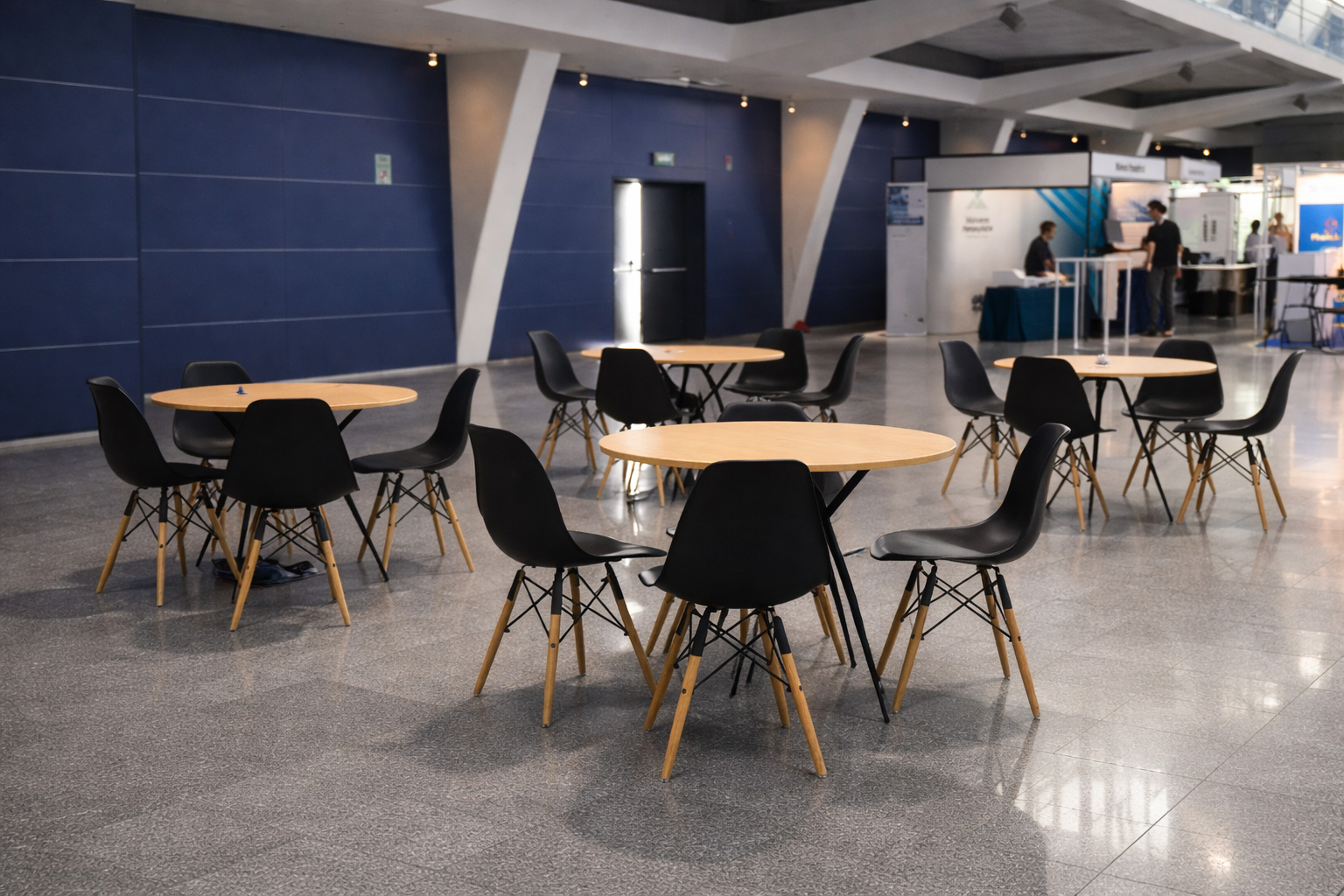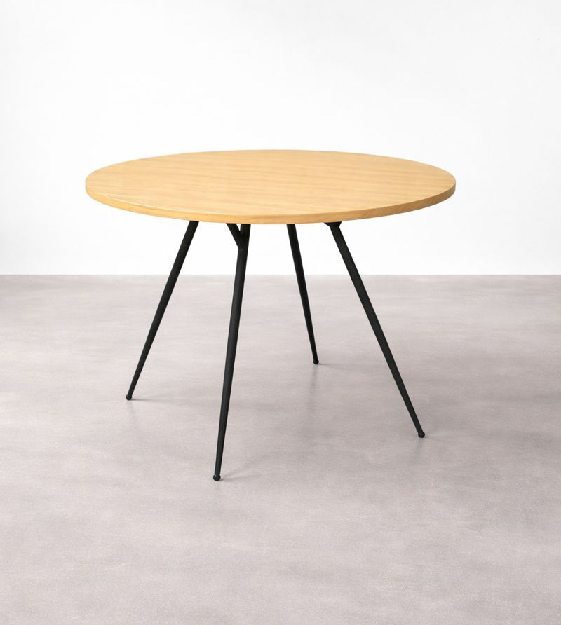 Mesa redonda em faia e ferro, que combina simplicidade e elegância. Adequada a diferentes tipos de eventos, conferências, reuniões ou zonas de networking, criando espaços funcionais.